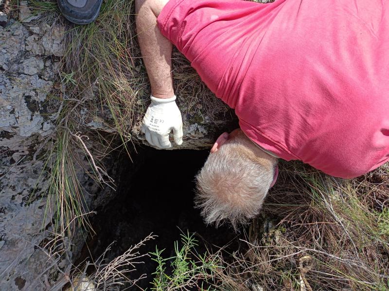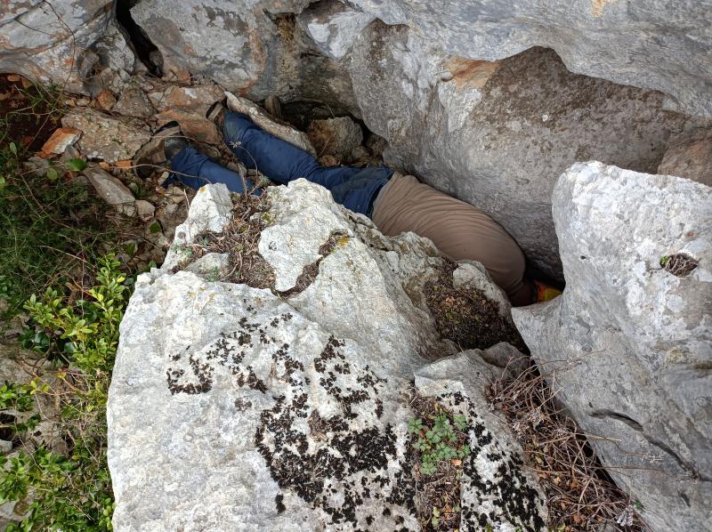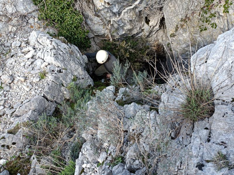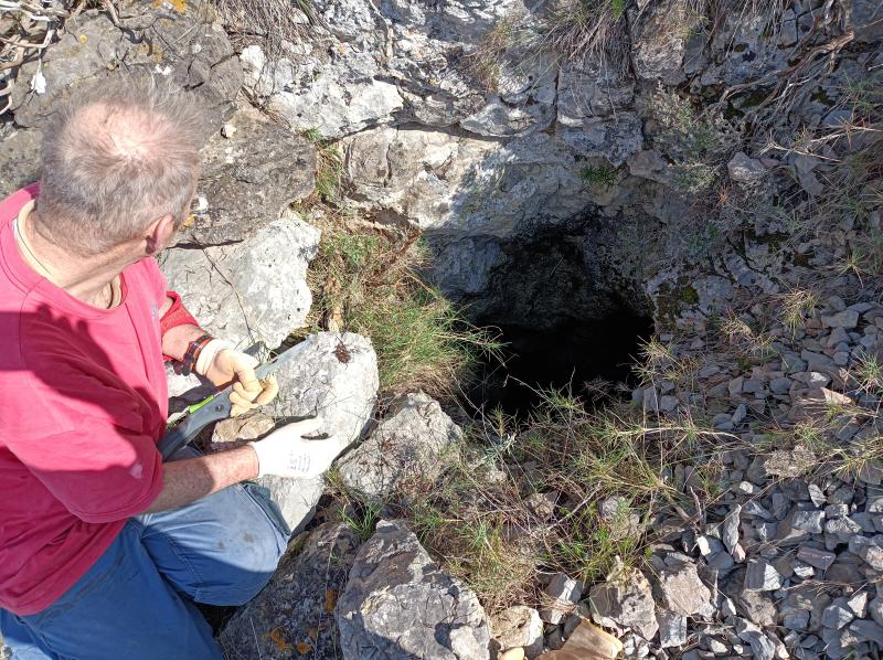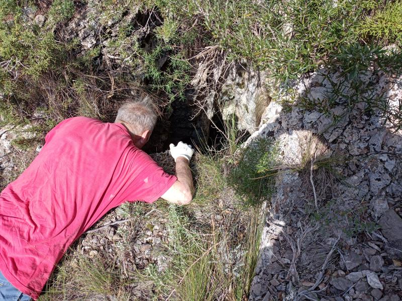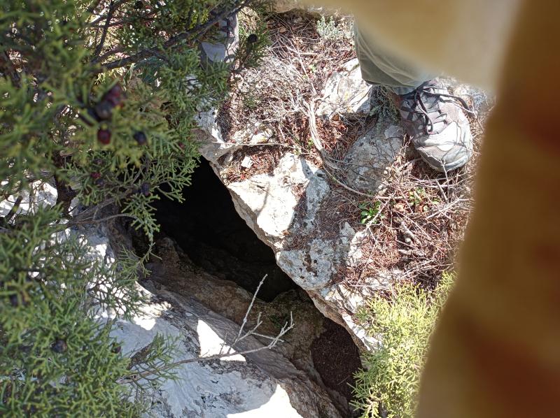 La cavité est bien connue ( voir fiche cavité ) et s'ouvre sur une colline proche de la route de Perillos prés de l'aven du Roboul entre la cabane du platane et la Bergerie.