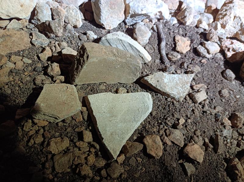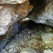Dans une trés vaste doline une grotte basse horizontale en boucle. Elle à vraisemblablement été fouillée. Tessons de grosse céramique tournée.