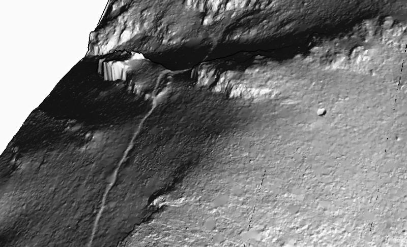Un solitaire de belle taille qui donnait bien au lidar mais dont le fond à moins 4 m est irrémédiablement bouché. Vu par Dlo. A oublier.