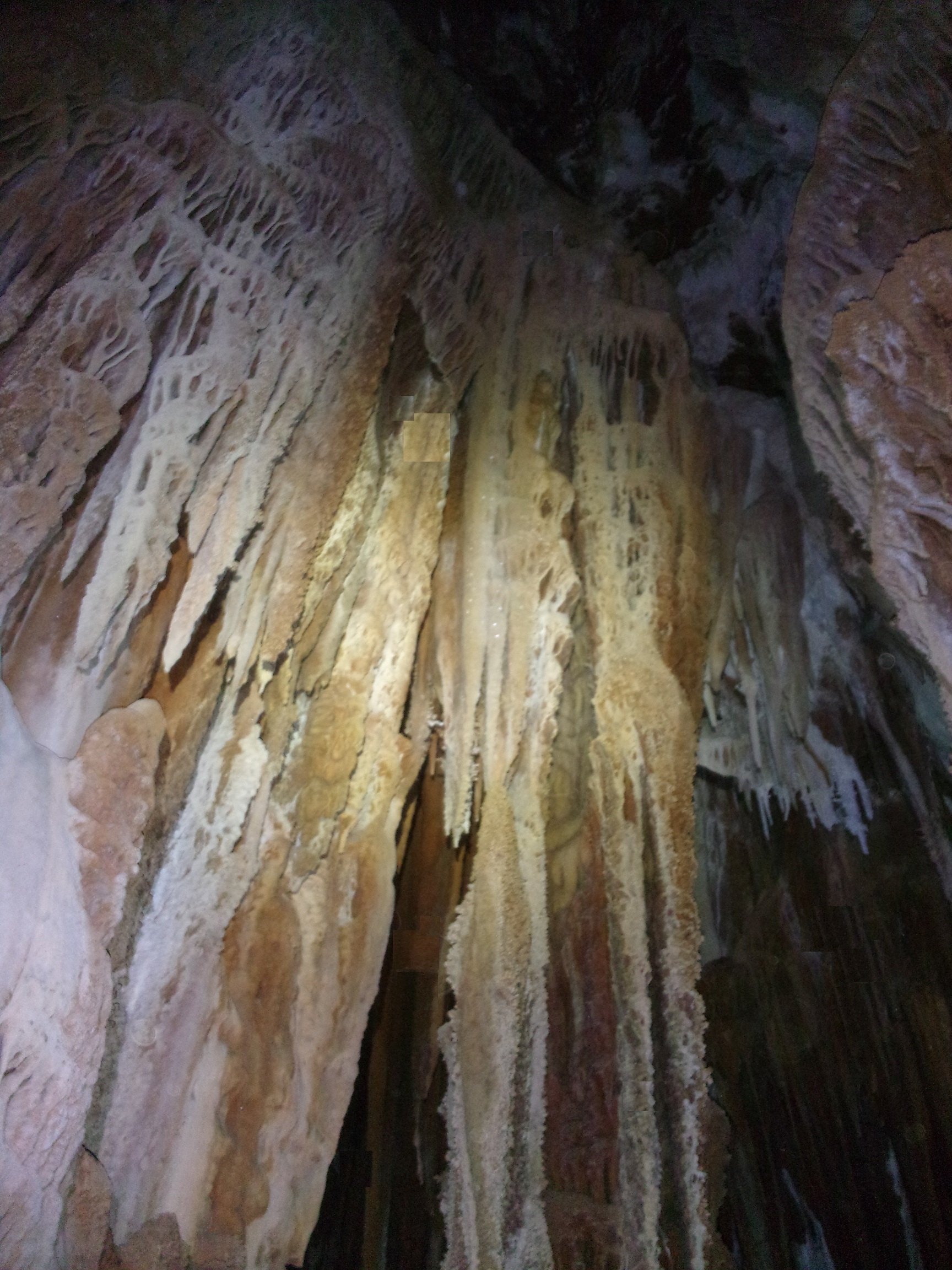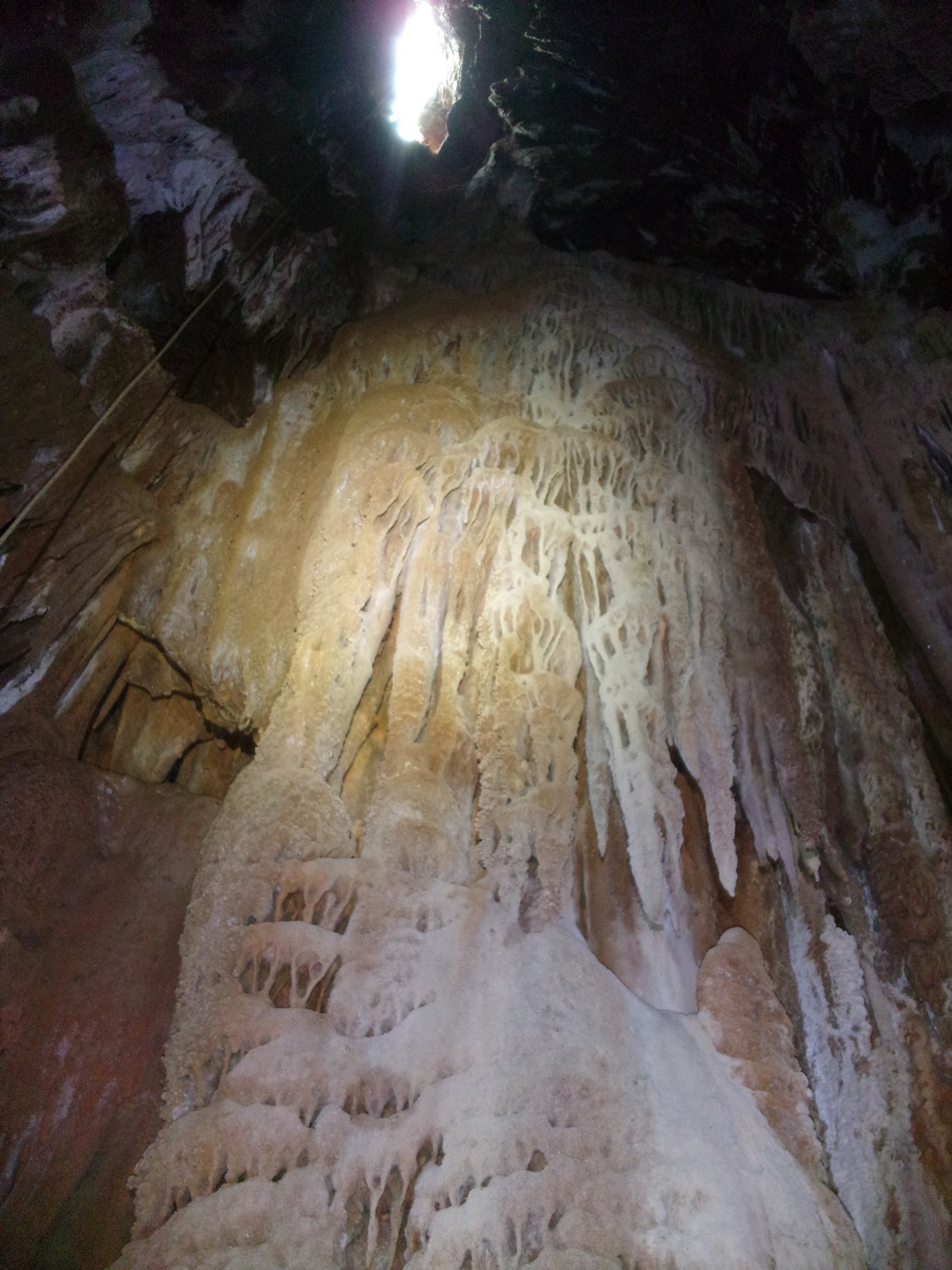 il faut ouvrir grand les yeux pour la découverte des majestueuses concrétions, de grandioses stalactites, de magnifiques draperies, des coulées de colonnes gigantesques de roches aux formes diverses avec des marbrures blanches et scintillantes.