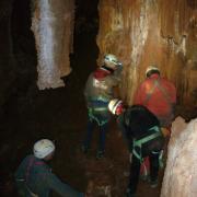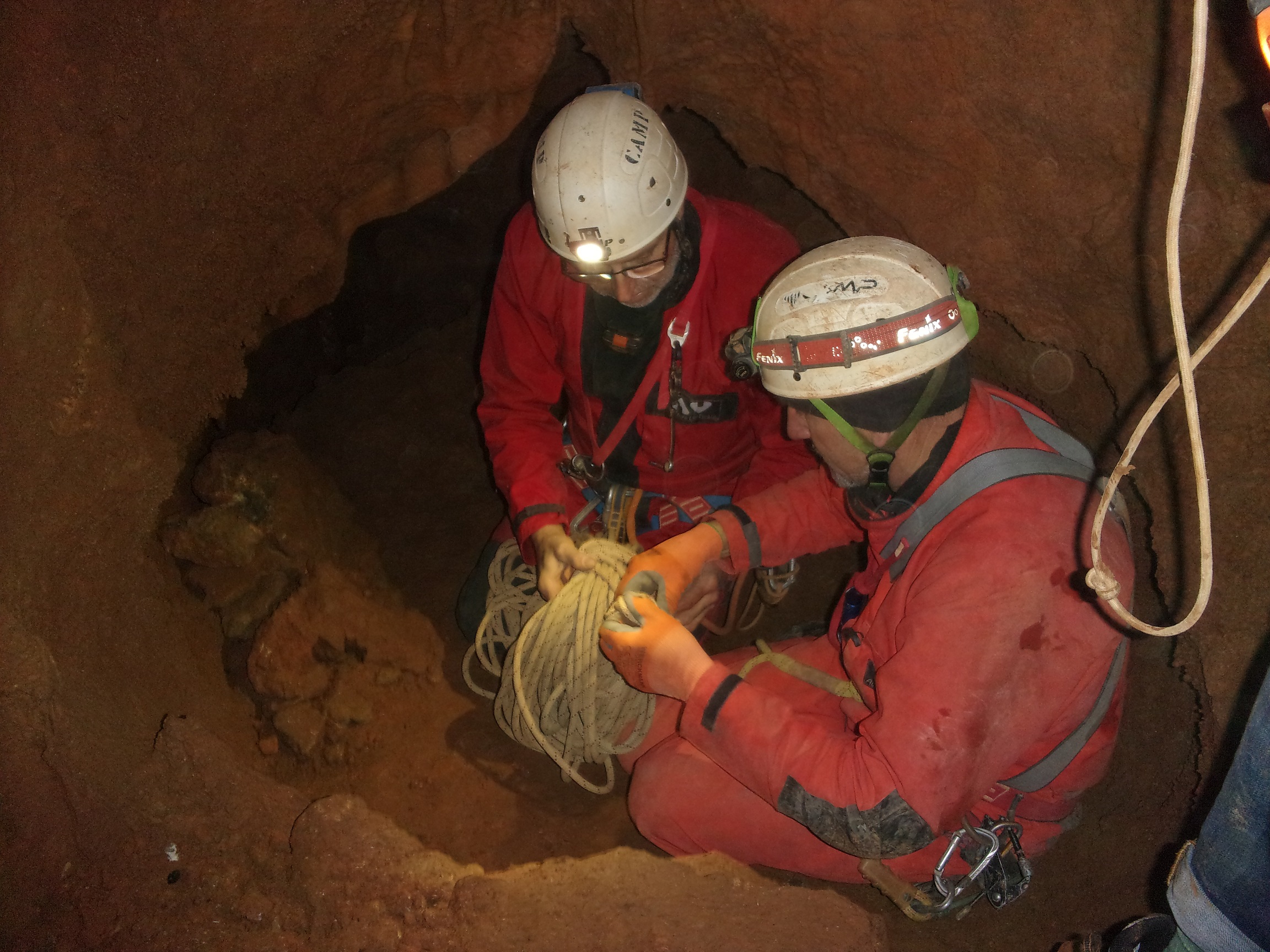 Une 2ème équipe (Gaston et Guillem) de leur côté vont au Grand Barrenc du Pla de Périllos au passage des 3 Lundis afin de mieux réajusté le Mickey (voir le récit du 16-11-2025) au niveau de la grande galerie descendante, la corde à tendance à frotter contre la paroi d'ou un risque majeur de sécurité.