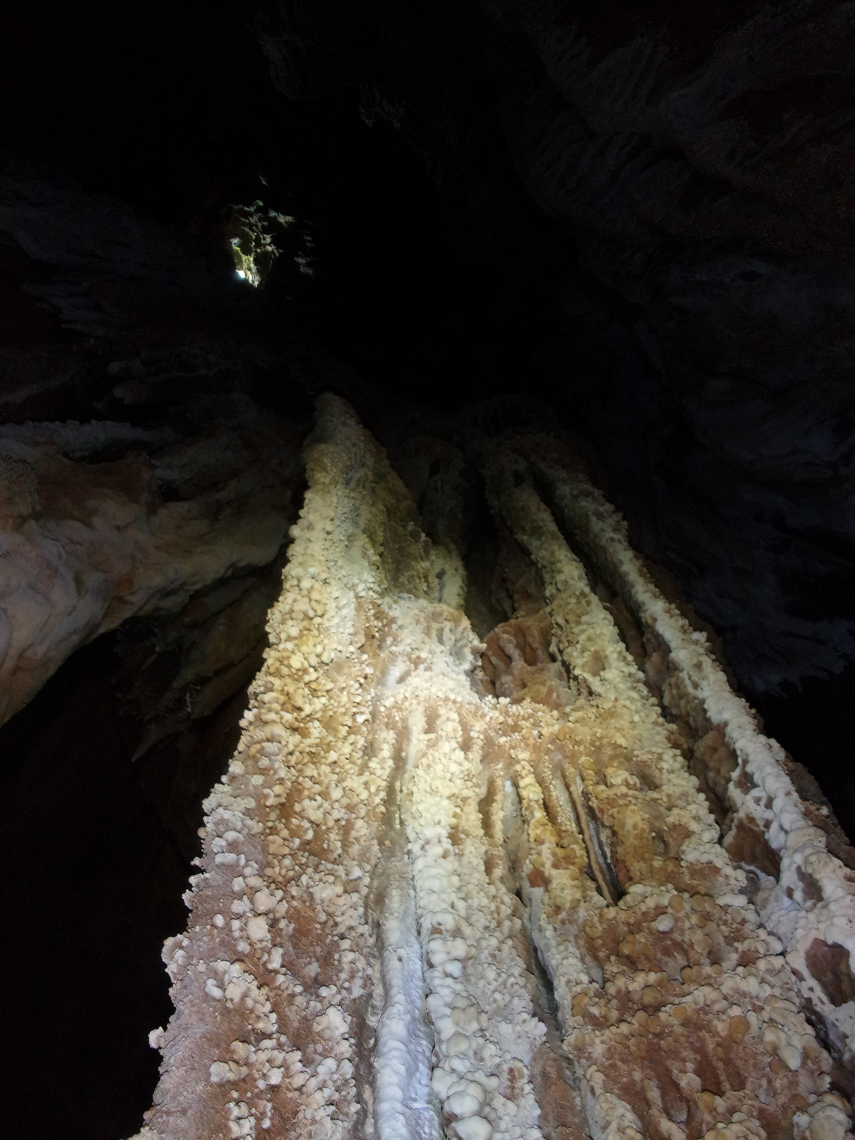 Il y a même une énorme stalactite qui est fractionnée, comme suspendue dans le vide.
