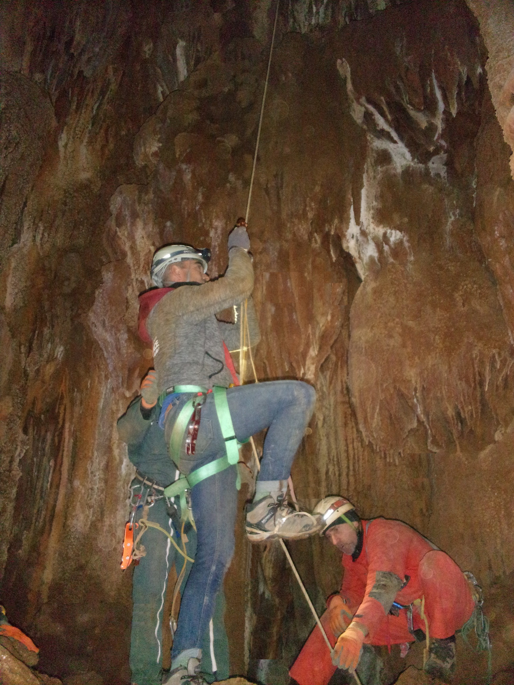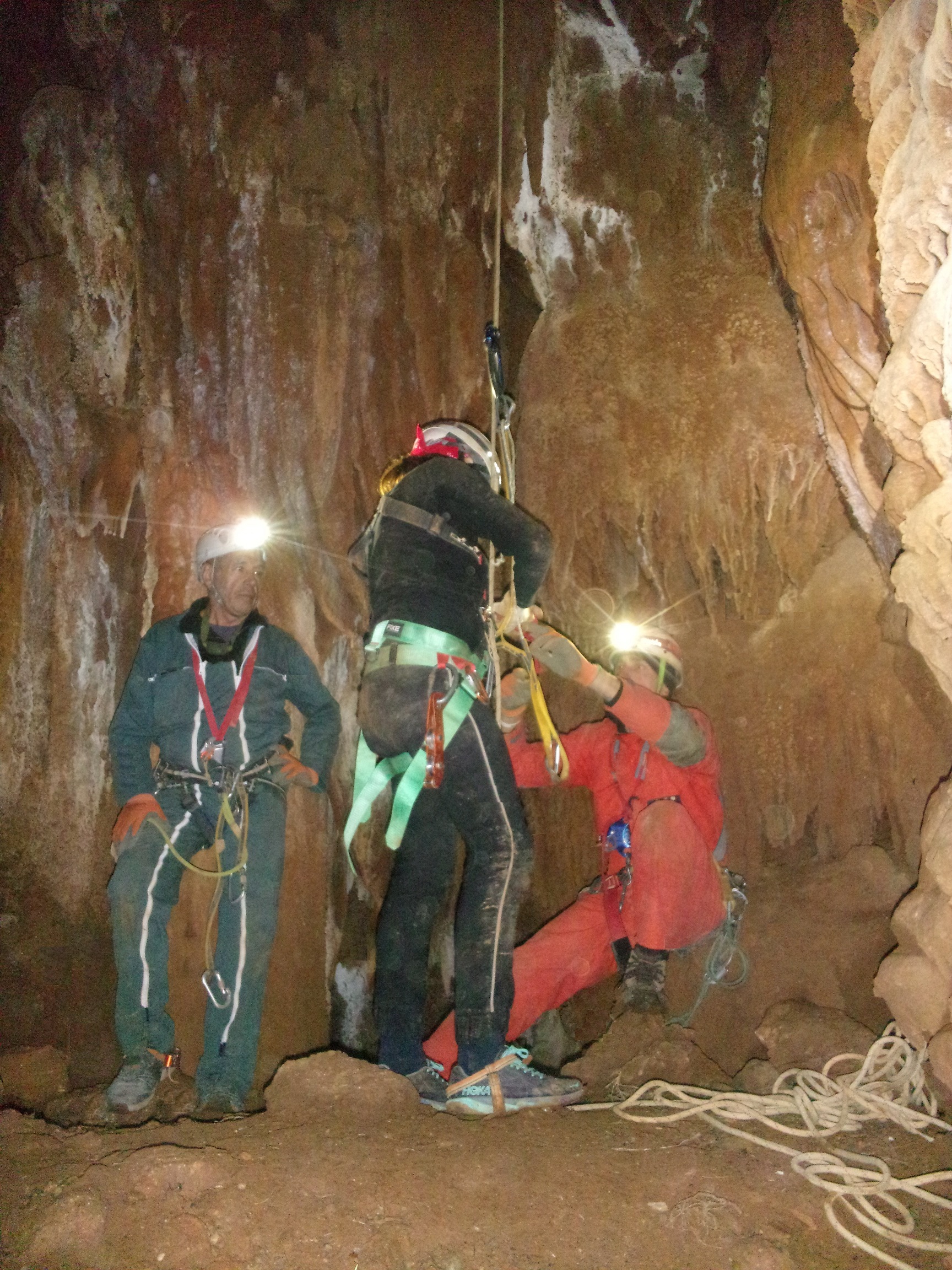 Aujourd’hui 2ème sortie pour Cécile et Étienne qui vont s'attaquer à un puits de plein-pied soit 15 m puis des galeries tortueuses afin de parfaire une adaptation au maniement, aux diverses situations de configuration et de maîtrise de soi.