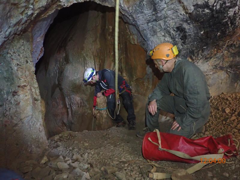 Aujourd’hui 2ème sortie pour Cécile et Étienne qui vont s'attaquer à un puits de plein-pied soit 15 m puis des galeries tortueuses afin de parfaire une adaptation au maniement, aux diverses situations de configuration et de maîtrise de soi.