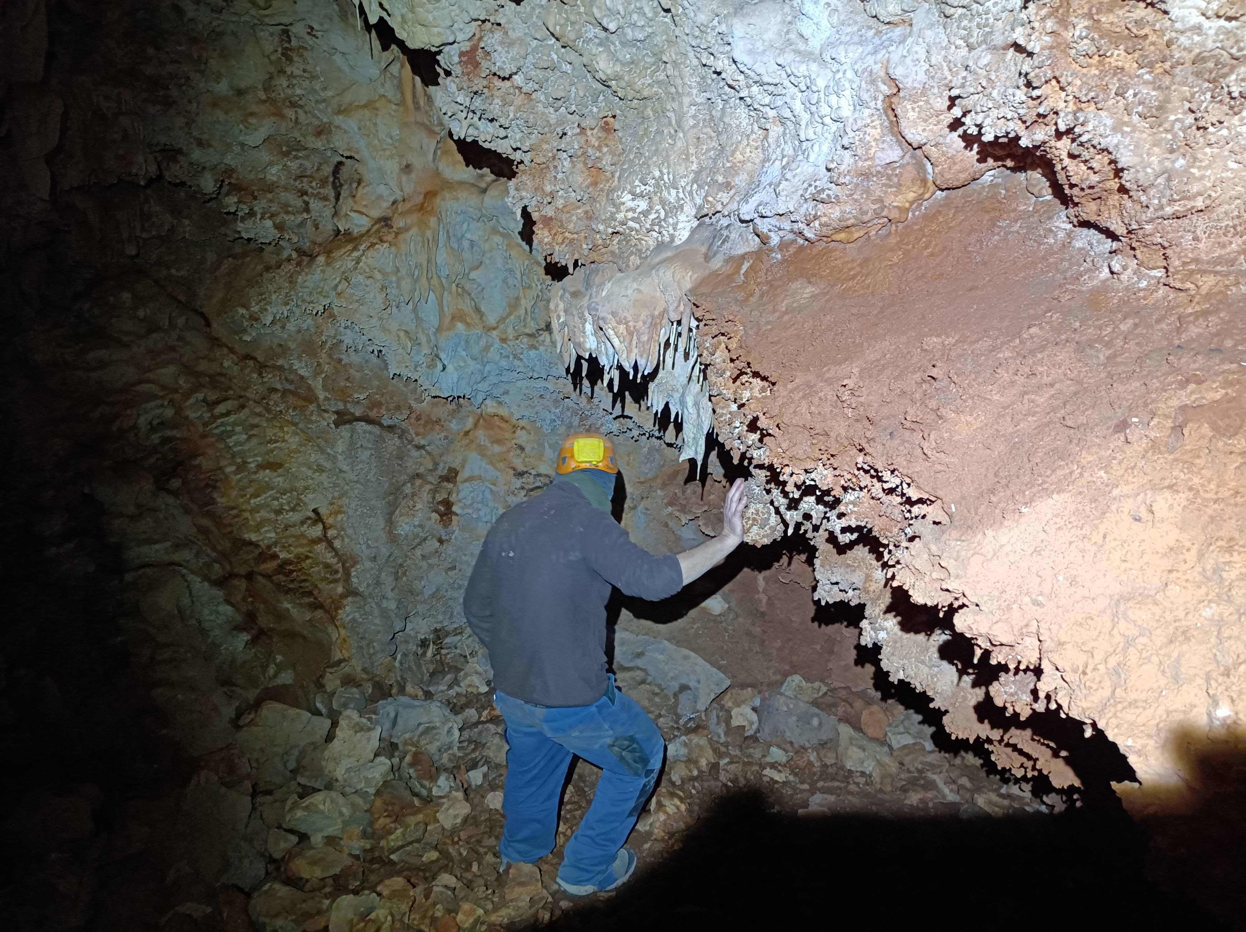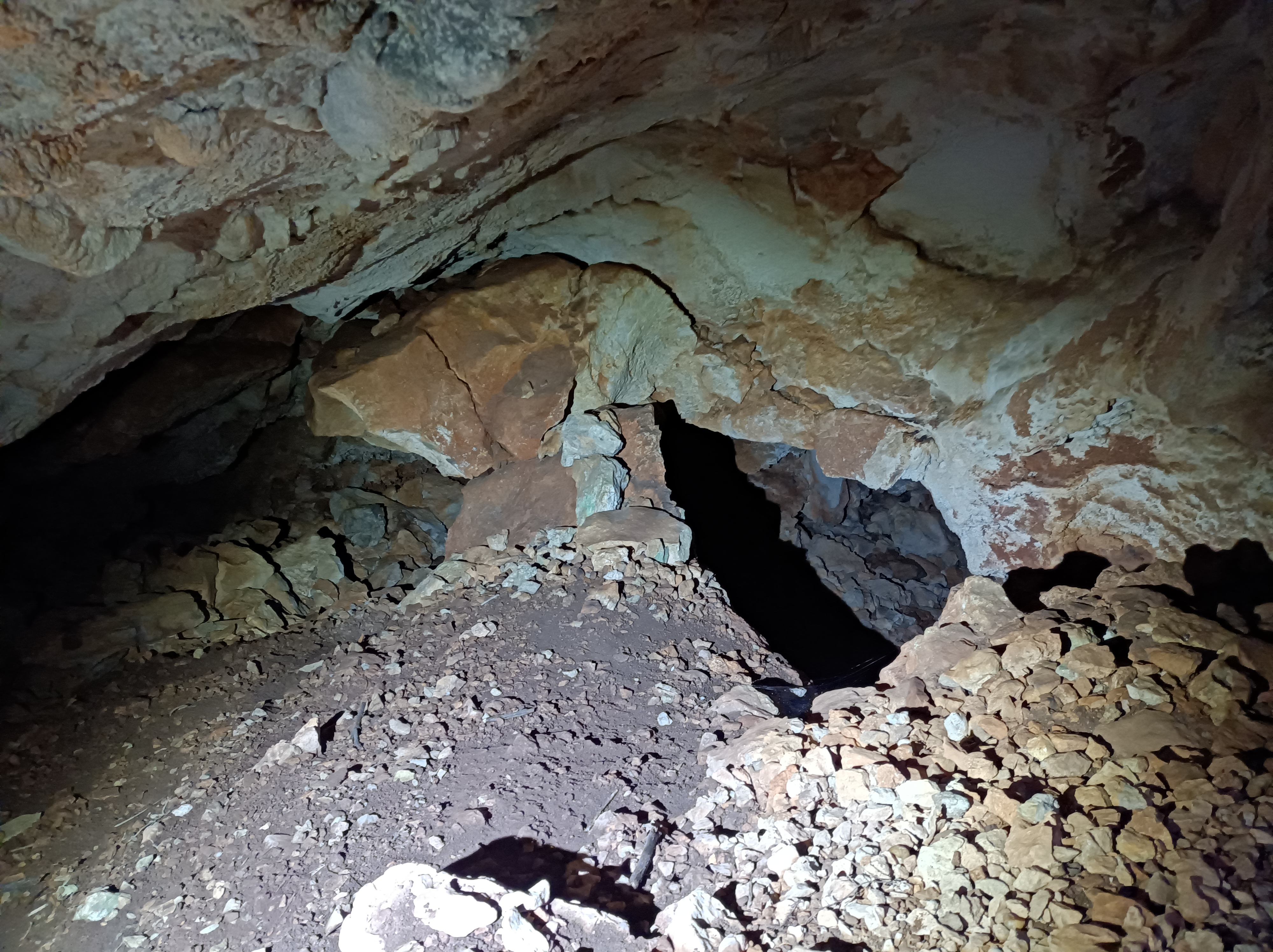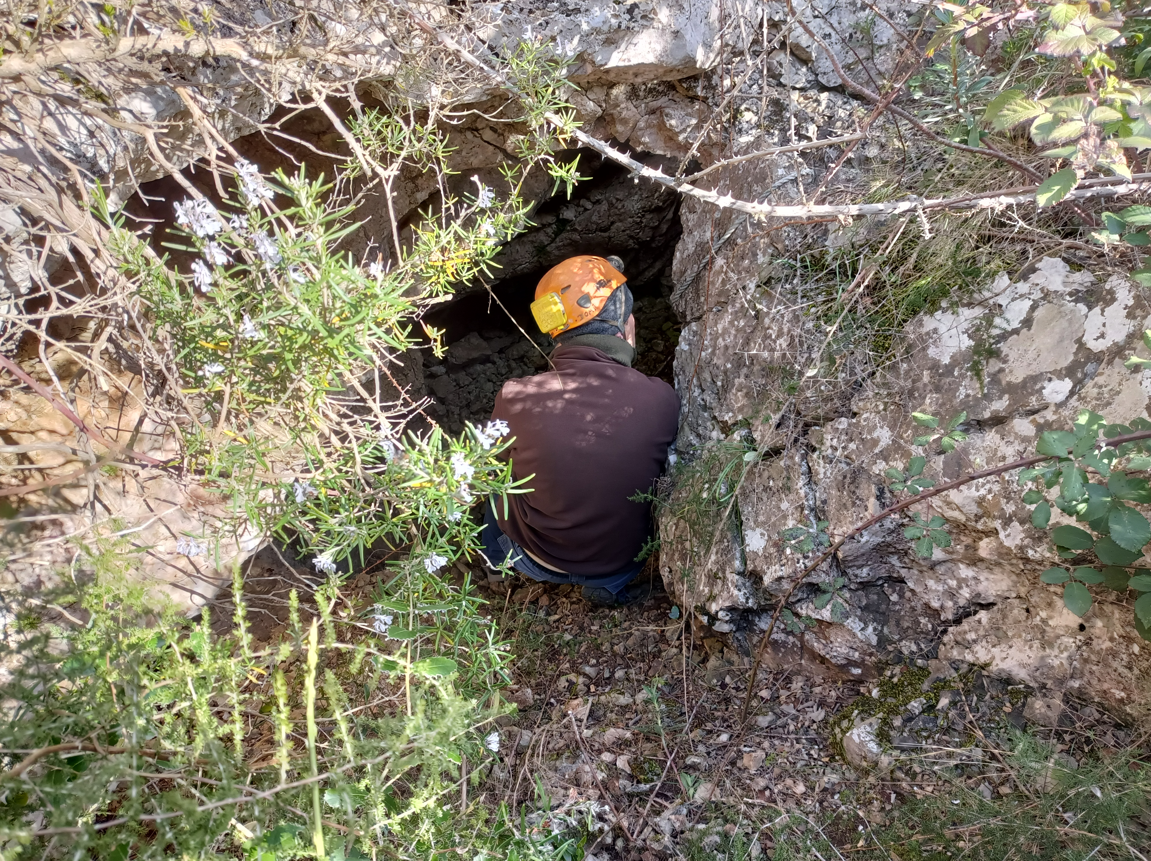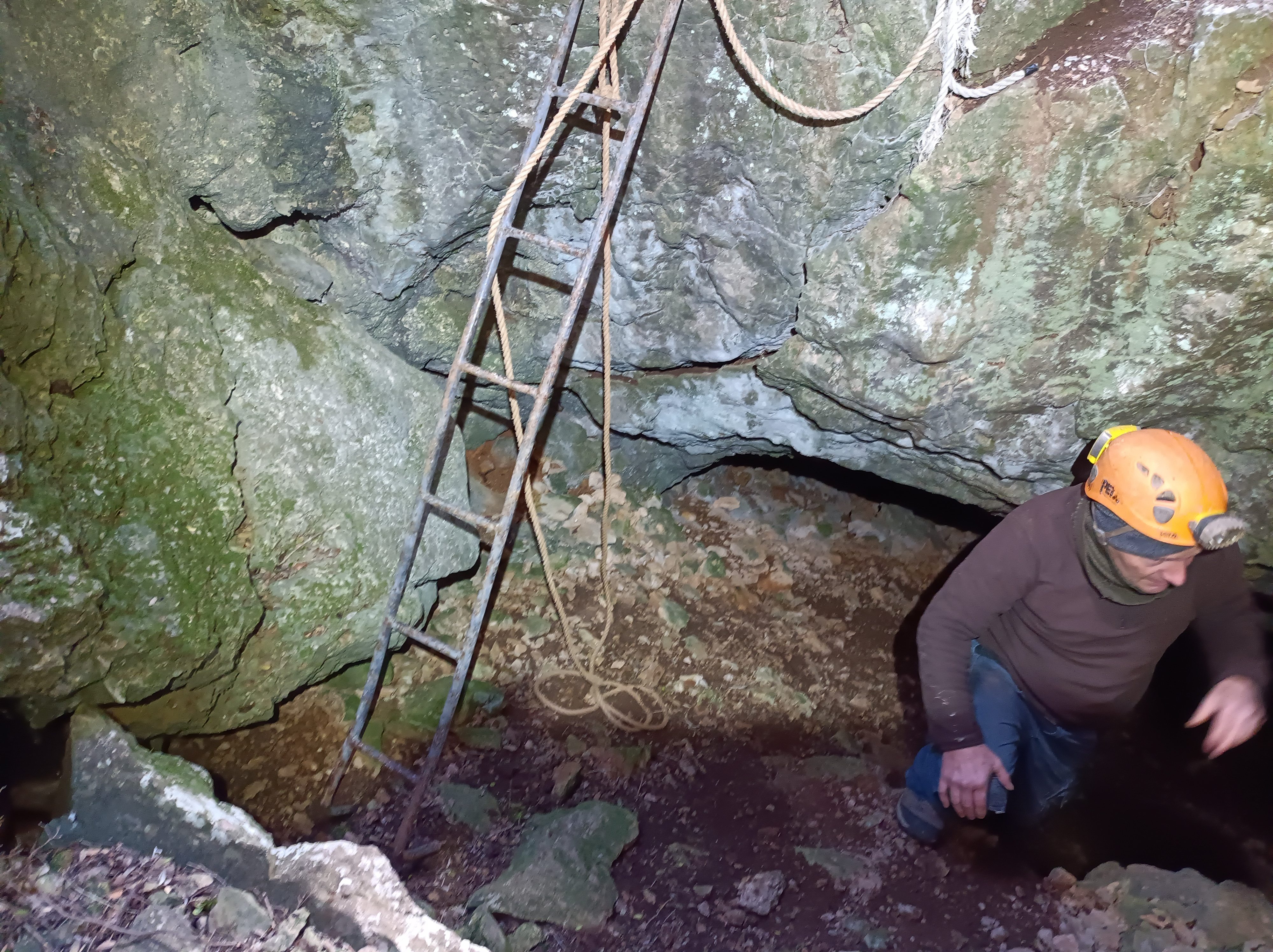 Il s'agit d'une doline embroussaillée. Au fond sur un bord une large entrée de grotte. Une corde est installée sur un ressaut de 2 m. Puis c'est une grande salle plongeante, développement 50 m profondeur maxi 10 m. Nous découvrons l'échelle qui nous facilite l'extraction.