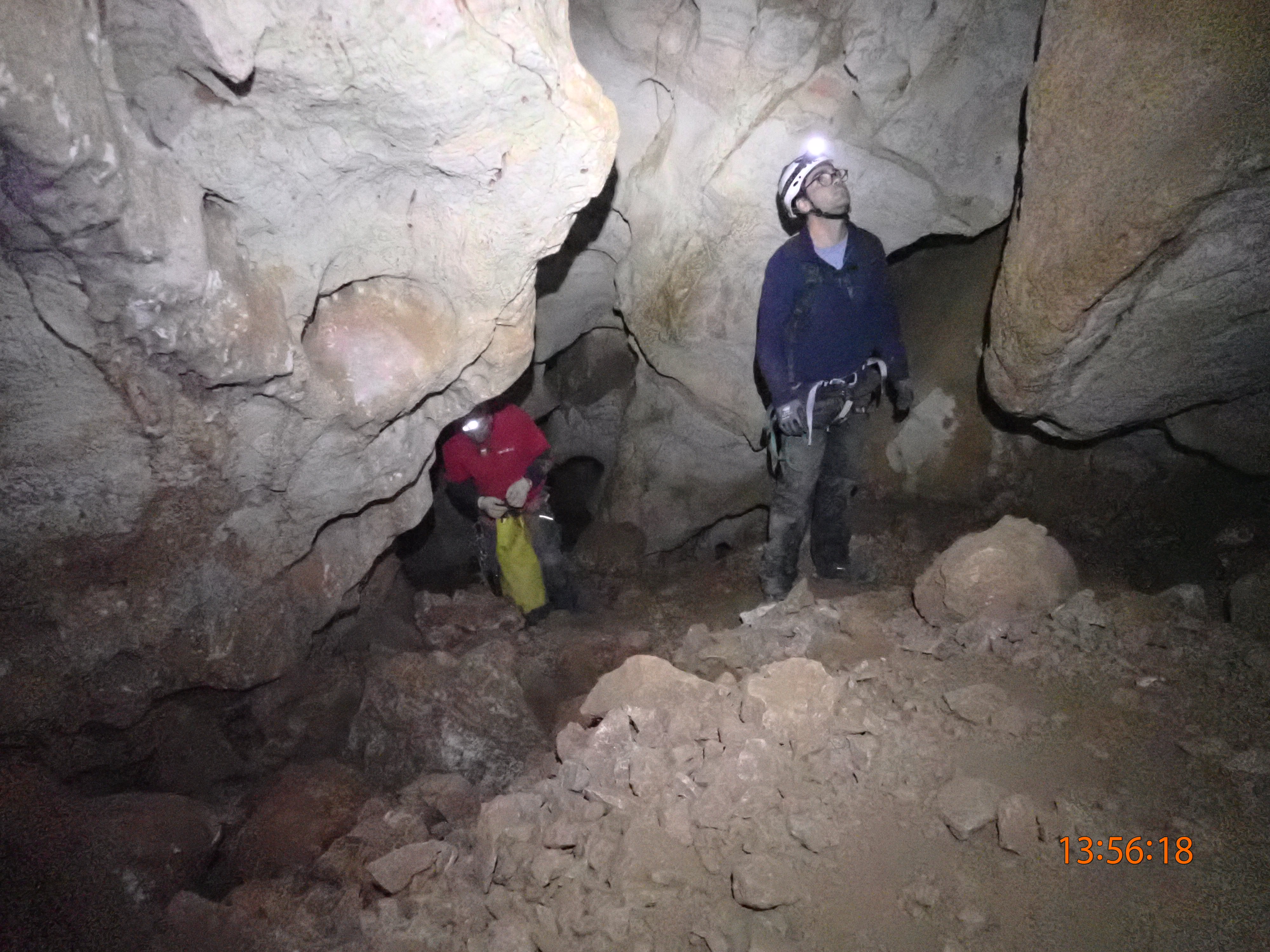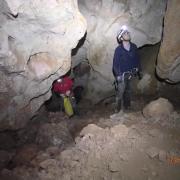 Cette belle grotte, joyau des Aspres est le but de cette sortie pour la faire découvrir à Robert et Philippe. Elle occupe la partie sommitale d'une colline surplombant Corbère les Cabanes. et s'est développée dans du calcaire dévonien. La karstification s'est faite de façon très particuliére en formes rondes en "gruyère" et dignes des réalisations de l'Art Nouveau, remarquable travail de l'eau. Le réseau est complexe sur plusieurs étages avec un développement assez important. 5 orifices permettent de pénétrer dans la grotte. Nous choisissons de prendre le "trou du renard " La progression est délicate et nécessite une certaine prudence. Il faut franchir queiques ressauts et étroitures . Quelques passages sont équipés mais une petite corde sortie du sac s'avère bien utile. Enfin la sortie par une buse en béton est atteinte pour retrouver le soleil.