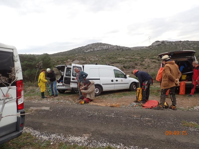 Le tunnel d'entrée débouche trés vite au bord d'un p6. Le fond a fait l'objet d'une grosse désobstruction ayant nécessité des retenues de gravats par chevrons et grillages solides par gradins successifs.