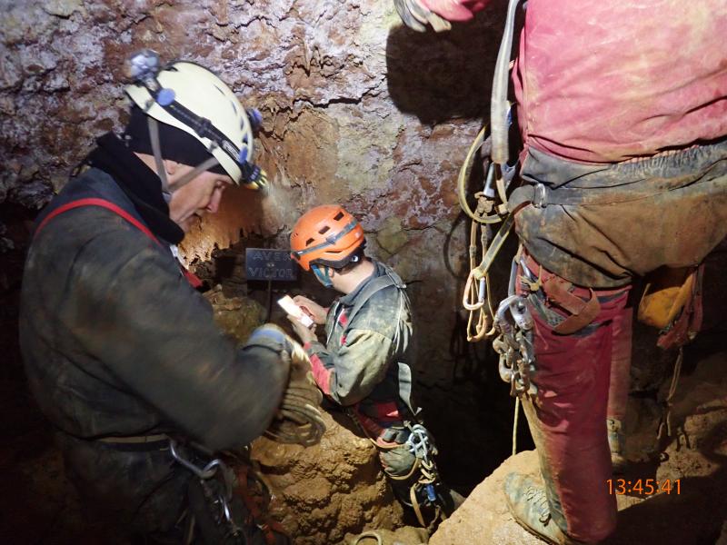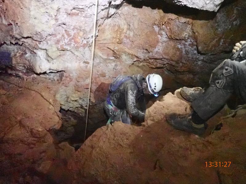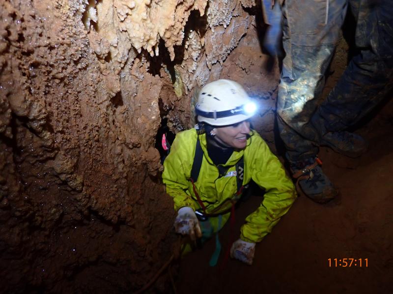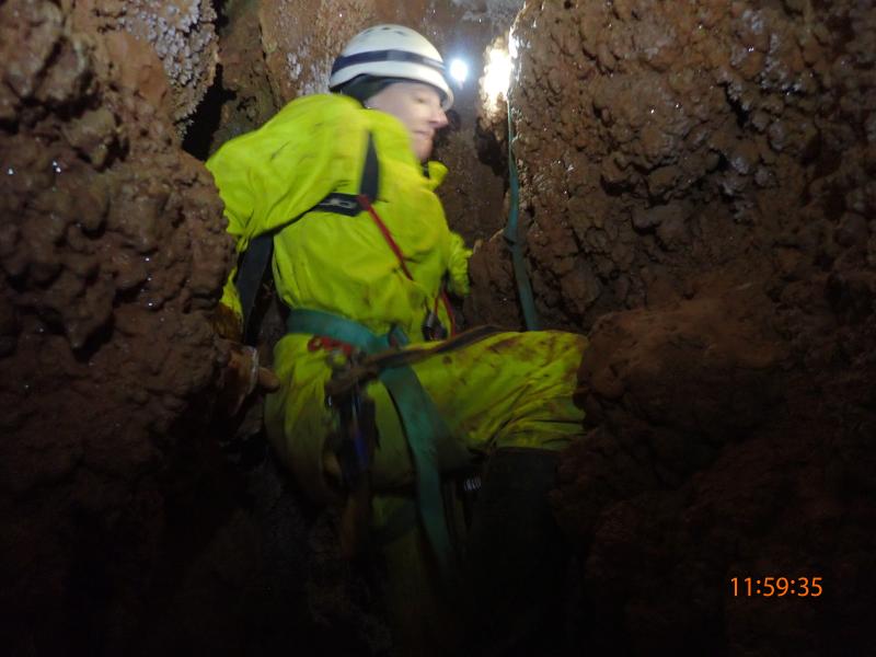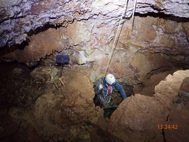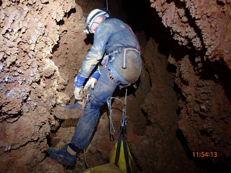 c'est une belle cavité difficile à apprivoiser. Elle a été travaillée par l'équipe Denis, François, Jacky et explorée acrobatiquement par Nico Aleman, à la recherche d'un réseau parallèle qui serait de toute beauté.